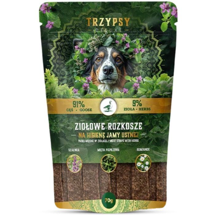 Trzy Psy Ziołowe rozkosze Paski z gęsi na higienę jamy ustnej Przysmak 70g
