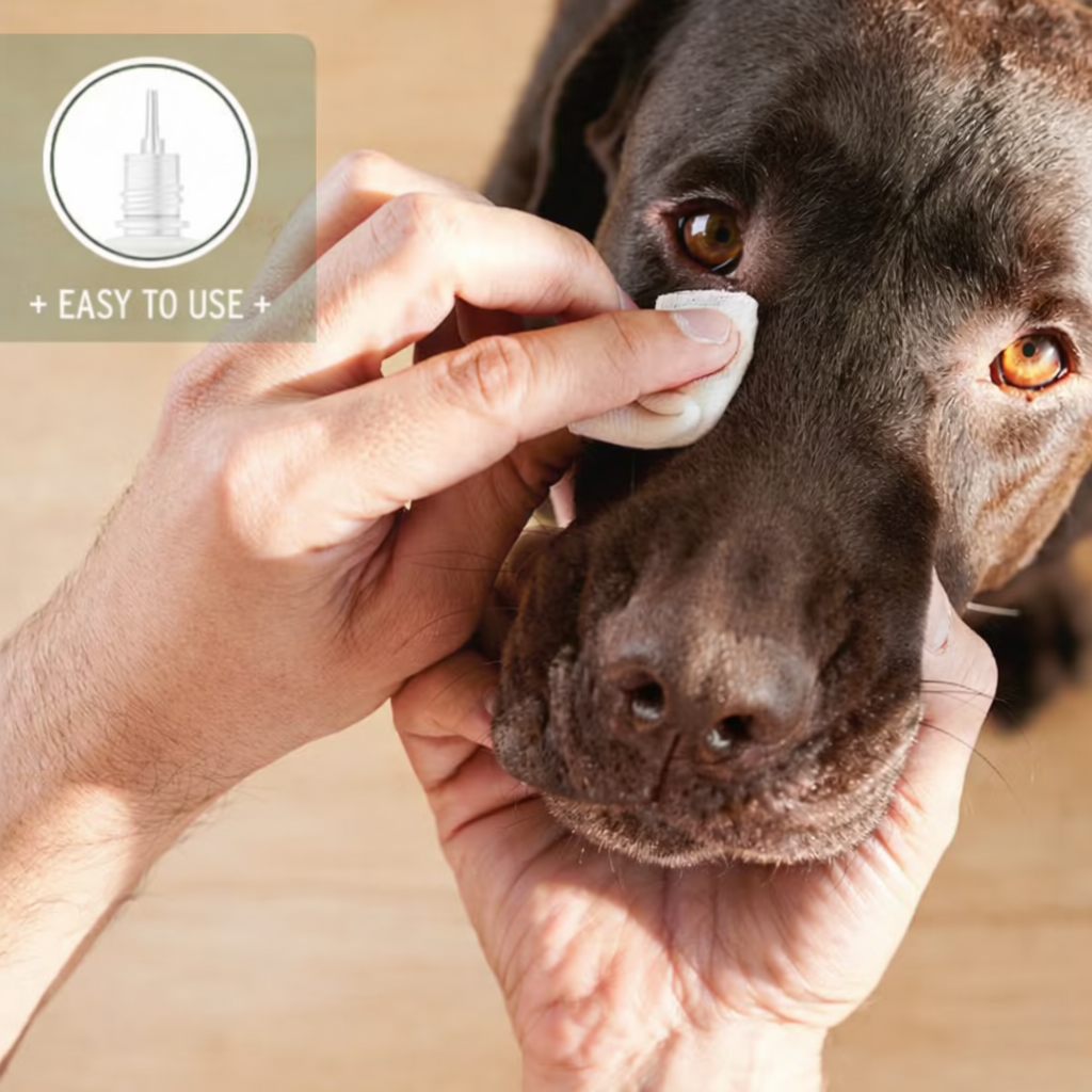 Preparat został opracowany z myślą o łagodnym oczyszczaniu i pielęgnacji delikatnej skóry wokół oczu. Pomaga usuwać nagromadzone zabrudzenia, zaschnięte wydzieliny i osady z powiek oraz brzegów powiek. Regularne stosowanie wspiera utrzymanie czystej i zadbanej okolicy oczu, a u zwierząt ze skłonnością do śladów łzowych może pomagać ograniczać ich widoczność.
