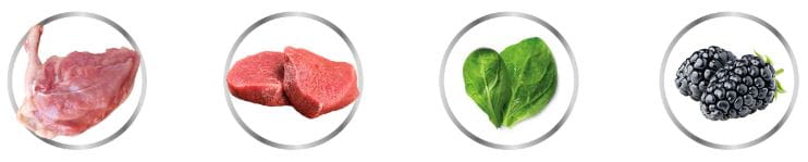 94% sarnina (68% mięso z sarny, 26% bulion z sarniny), 4% jagody, 1% minerały, 0,5% jabłko, 0,5% mięta.
