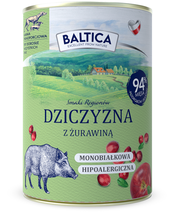 Baltica Dziczyzna z żurawiną monoproteinowa bezzbożowa 12 x 400g