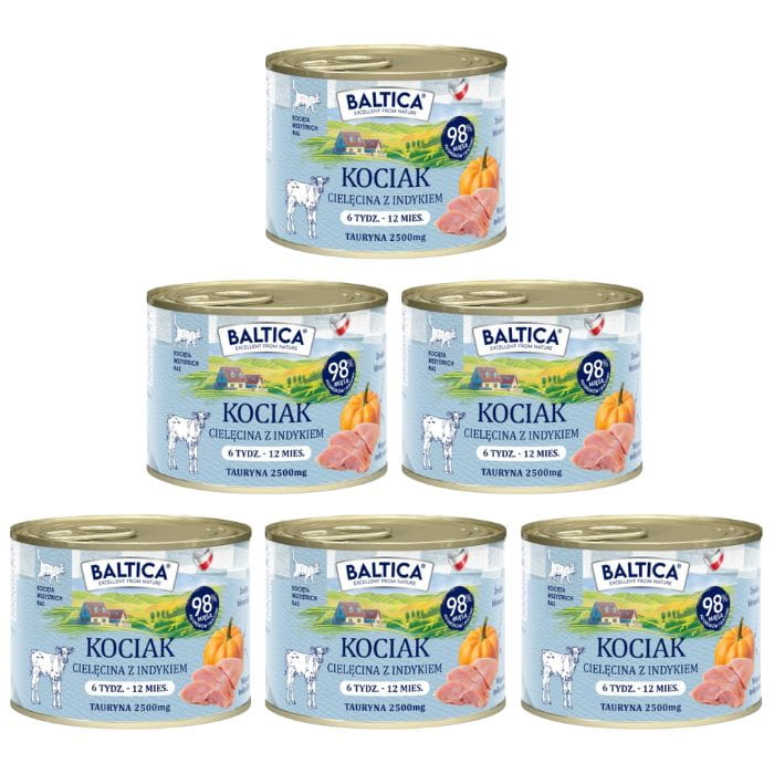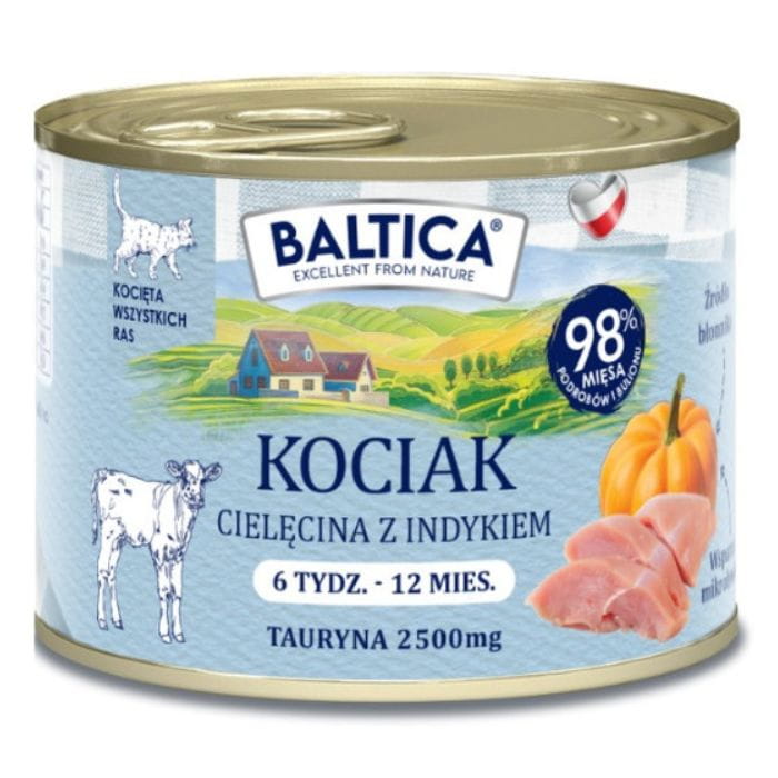 Baltica Karma mokra dla Kociąt Cielęcina z indykiem 6 x 185g Smaki regionów