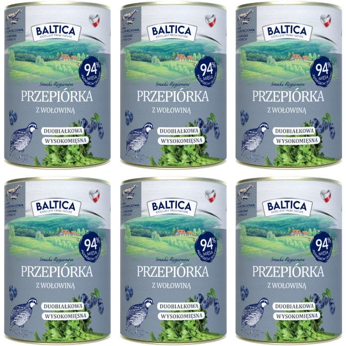 Baltica Karma mokra dla psa Przepiórka z wołowiną 6 x 400g