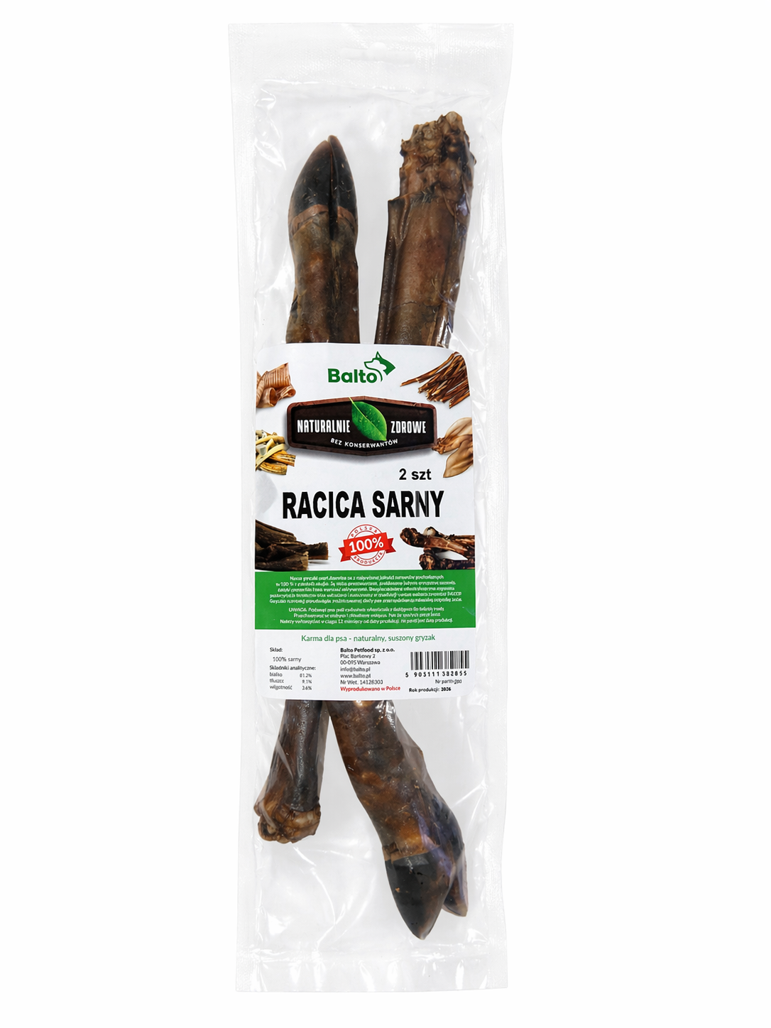 Racica sarny to naturalny, twardy i wyjątkowo aromatyczny gryzak dla psa, który daje mnóstwo przyjemności z gryzienia i zajmuje pupila na dłużej. To świetny wybór dla opiekunów, którzy chcą podać psu coś naprawdę naturalnego, bez sztucznych dodatków, a jednocześnie wspierać jego potrzebę żucia, higienę jamy ustnej i codzienny komfort. Teraz produkt dostępny jest w wygodnym, estetycznym opakowaniu 2 sztuk, dzięki czemu jeszcze lepiej sprawdzi się jako zapas ulubionego gryzaka Twojego psa.