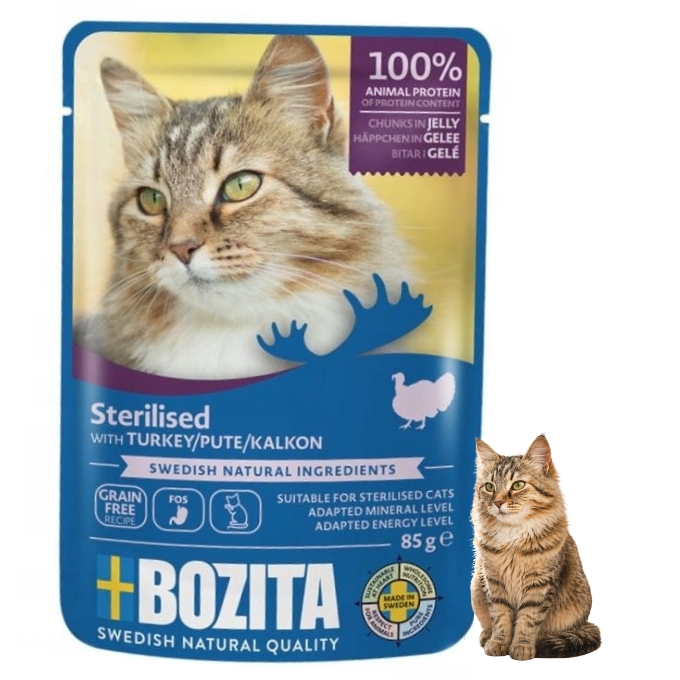 Bozita koty sterylizowane kawałki w galaretce z indykiem 85g
