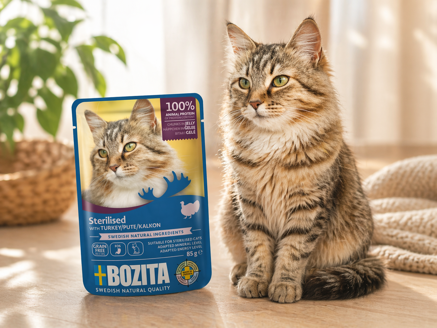 Po sterylizacji kot często ma nieco niższe zapotrzebowanie energetyczne, a jednocześnie większą skłonność do przybierania na wadze. Dlatego tak ważna jest karma, która odpowiada na te potrzeby bez rezygnowania ze smaku i jakości. Ta receptura została przygotowana właśnie z myślą o takich kotach, aby wspierać ich codzienną formę, dobre trawienie i prawidłową masę ciała.