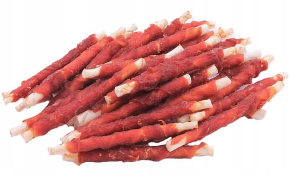 Skład: mięso z piersi kaczki 40%, kośc wapienna 58%, skrobia 0,5%, gliceryna 1%, aromat naturalny 0,5%.