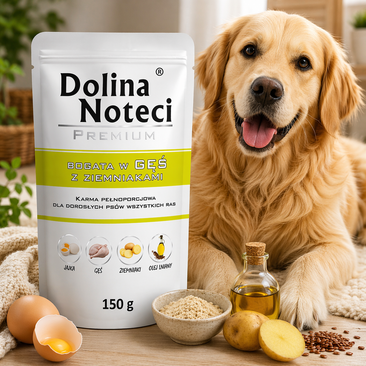 Dolina Noteci Premium Bogata w gęś z ziemniakami to pełnoporcjowa mokra karma dla dorosłych psów wszystkich ras, stworzona z myślą o codziennym żywieniu opartym na smaku, jakości i wartościowych składnikach. Aromatyczna gęsina sprawia, że posiłek jest wyjątkowo apetyczny, a jednocześnie dostarcza psu cennych aminokwasów i składników mineralnych ważnych dla jego codziennej kondycji. To świetny wybór dla opiekunów, którzy chcą podać swojemu psu coś naprawdę mięsnego, sycącego i dobrze skomponowanego.