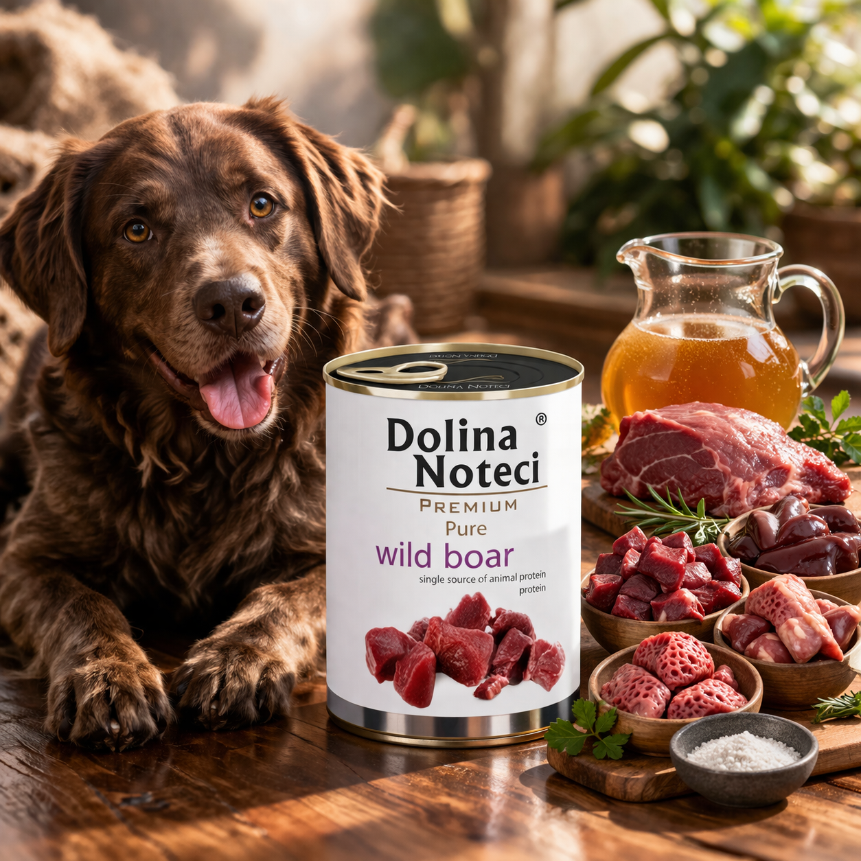 Dolina Noteci Premium Pure Dzik 800 g to pełnoporcjowa, monobiałkowa karma mokra dla dorosłych psów wszystkich ras, stworzona z myślą o psach wrażliwych, alergikach oraz pupilach wymagających prostego i dobrze tolerowanego składu. To propozycja dla opiekunów, którzy chcą podawać psu wysokiej jakości posiłek oparty na jednym źródle białka zwierzęcego i jednocześnie zadbać o jego codzienny komfort trawienny.