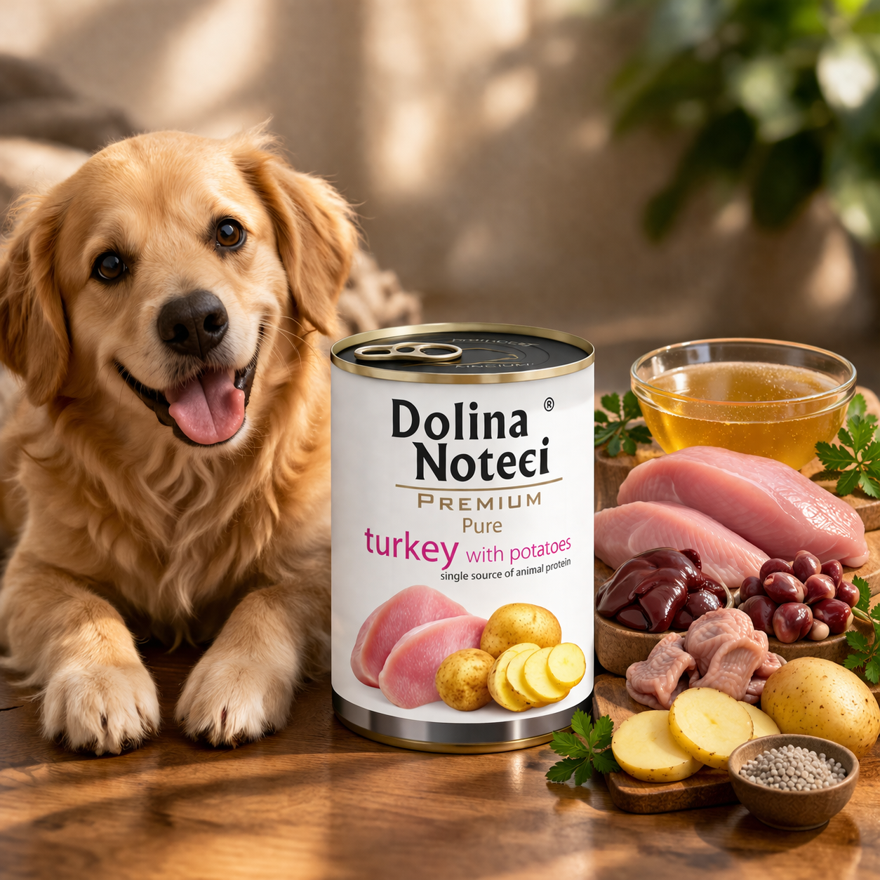 Dolina Noteci Premium Pure Indyk z ziemniakami 800 g to pełnoporcjowa, monobiałkowa karma mokra dla dorosłych psów wszystkich ras, stworzona specjalnie z myślą o psach wrażliwych, alergikach i pupilach z delikatnym układem pokarmowym. To przemyślana receptura dla opiekunów, którzy chcą podawać psu prosty skład, wysoką jakość i białko, które jest dobrze tolerowane przez organizm.