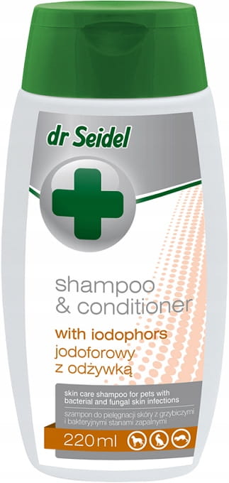 Dr Seidel Szampon jodoforowy z odżywką dla psa kota na stany zapalne 220ml