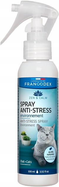 SPRAY ANTYSTRESOWE ŚRODOWISKO FRANCODEX pozwala stworzyć bezpieczne środowisko dla kotów, jak również unikać niepożądanych zachowań związanych ze stresem (miauczenie, niezachowywanie czystości, niszczenie...).