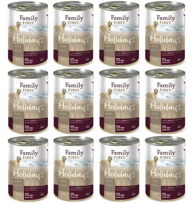 Family First Adult Mono Karma mokra dla psa Kaczka z batatami 12 x 400g