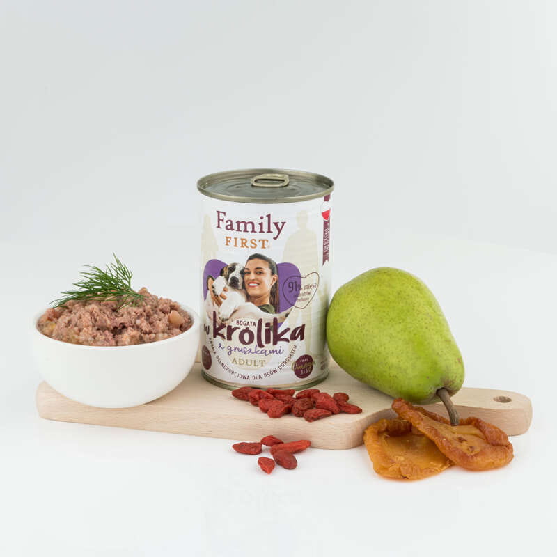 Family First Mokra karma dla psa Królik z gruszkami 400g
