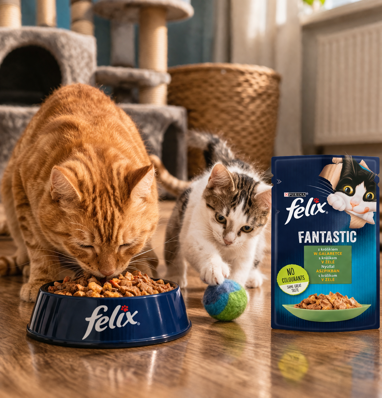 Dorosły kot o masie ciała około 4 kg powinien otrzymywać około 4 saszetki karmy dziennie, podzielone na co najmniej 2 oddzielne posiłki.