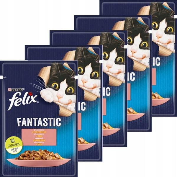 Felix Fantastic z łososiem w galaretce zawiera wszystkie składniki, potrzebne Twojemu kotu by zachować zdrowie, witalność i długie życie. Dania zostały wyprodukowane z wyłącznie sprawdzonych, wysokiej jakościskładników. Użyte mięso pochodzi z kontrolowanych hodowli, zgodnych z rytmem i warunkami życia właściwymi dla danego gatunku, spełniające normy spożywcze pokarmu przeznaczonego dla ludzi.
