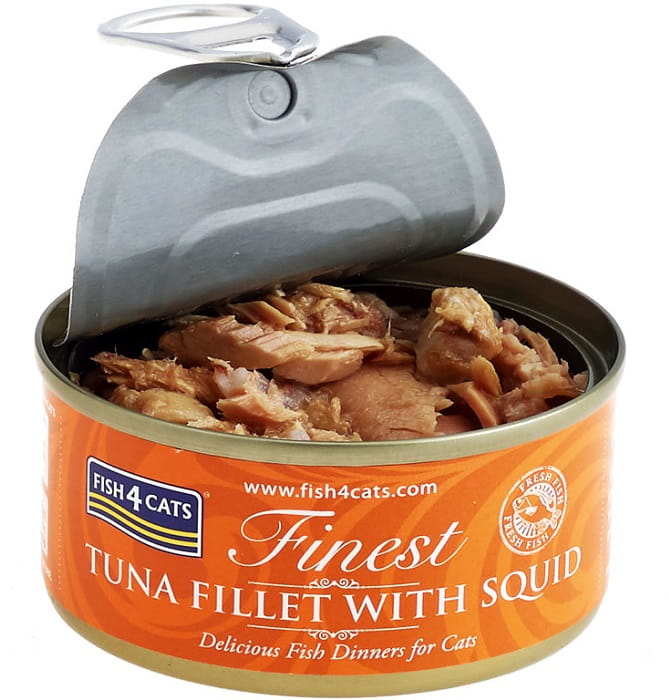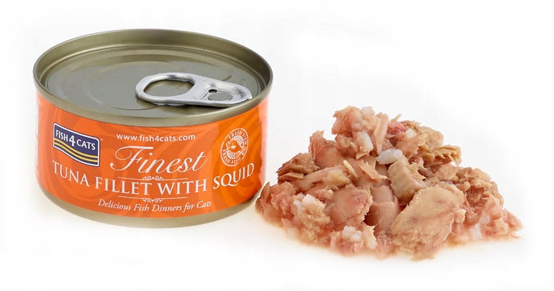 Fish4Cats Filety Tuńczyka z Kałamarnicami są przepyszną mokrą karmą rybną dla kotów.