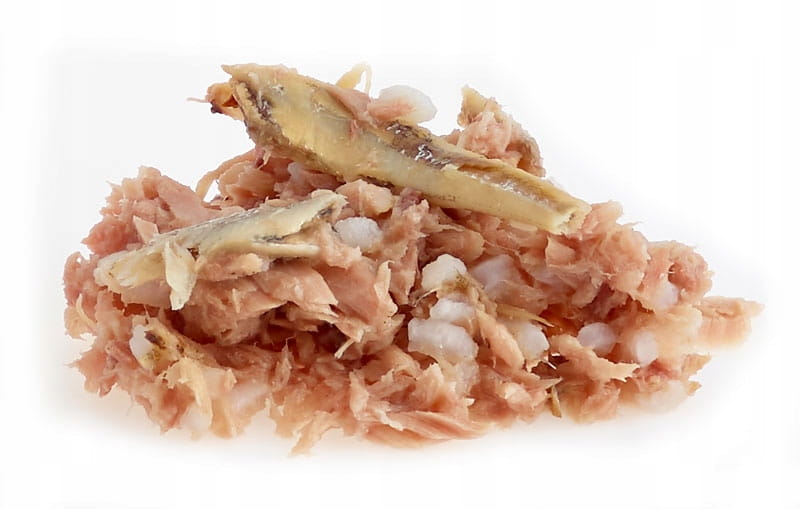 tuńczyk 65%, rosół rybny 25%, anchois (sardela) 5%, ryż 5%