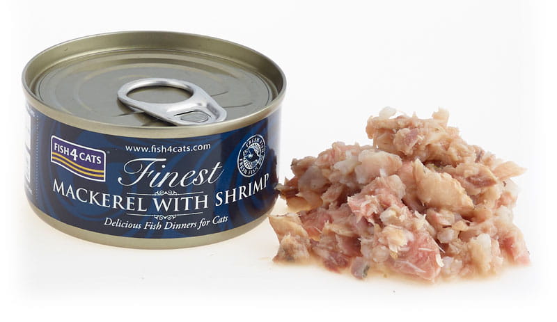 Karma mokra dla kota z ryby Fish4Cats Makrela z Krewetkami nie zawiera zbóż, a także konserwantów i sztucznych barwników. Jest w 100% naturalna.