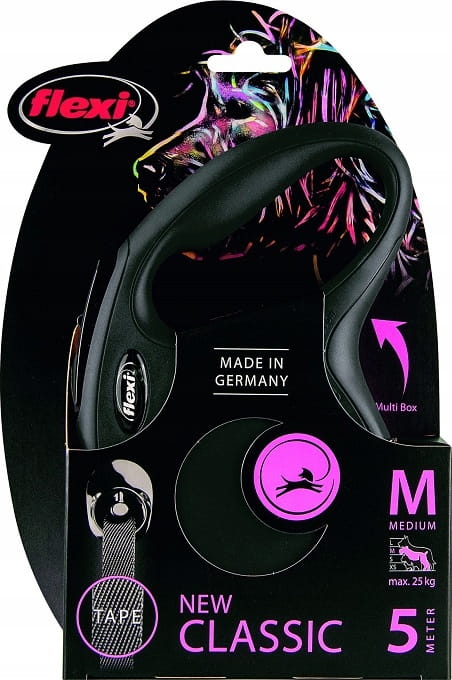 Flexi New Classic M taśma 5m do 25kg CZARNA