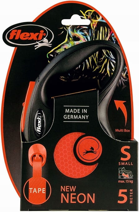Flexi New Neon S Taśma 5m do 15kg POMARAŃCZOWA