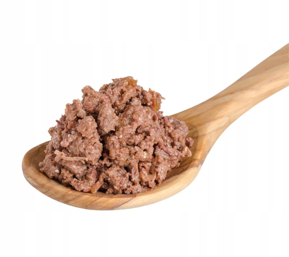 Wysokiej jakości mięsna karma składa się w 100% z wartościowego mięsa i podrobów, takich jak serce, płuca i wątroba oraz zawiera niezbędne witaminy i minerały. Mięso i podroby pochodzą wyłącznie z lokalnej jagnięciny, ze świeżego uboju.