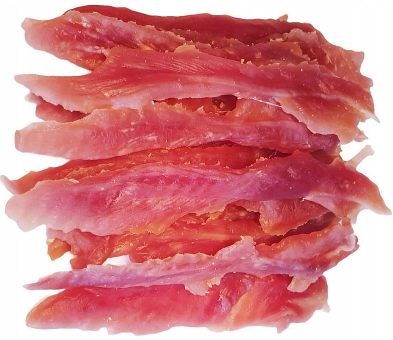 To idealny wybór dla opiekunów, którzy chcą podawać psu smaczną, wygodną i wartościową przekąskę. Podsuszane paski mają odpowiednią długość, są wygodne do podawania i dobrze sprawdzają się zarówno w domu, jak i na spacerze czy podczas treningu.