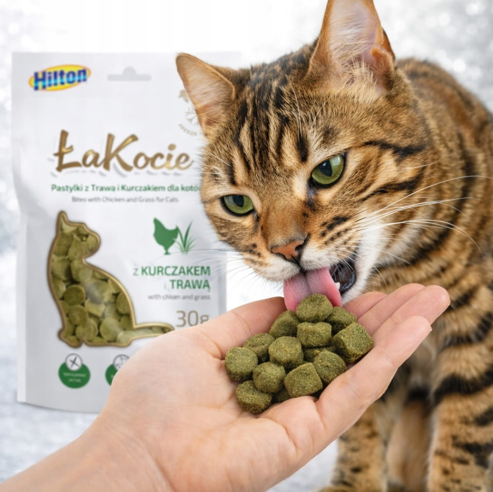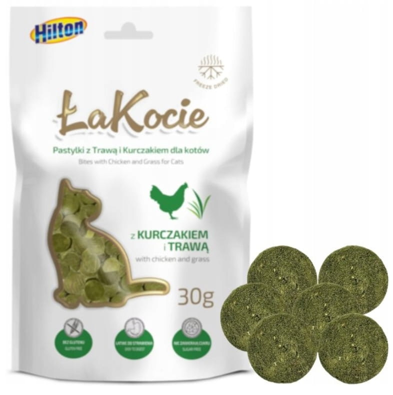 Hilton Liofilizowany Pastylki z trawą i kurczakiem 30g Przysmak dla kota
