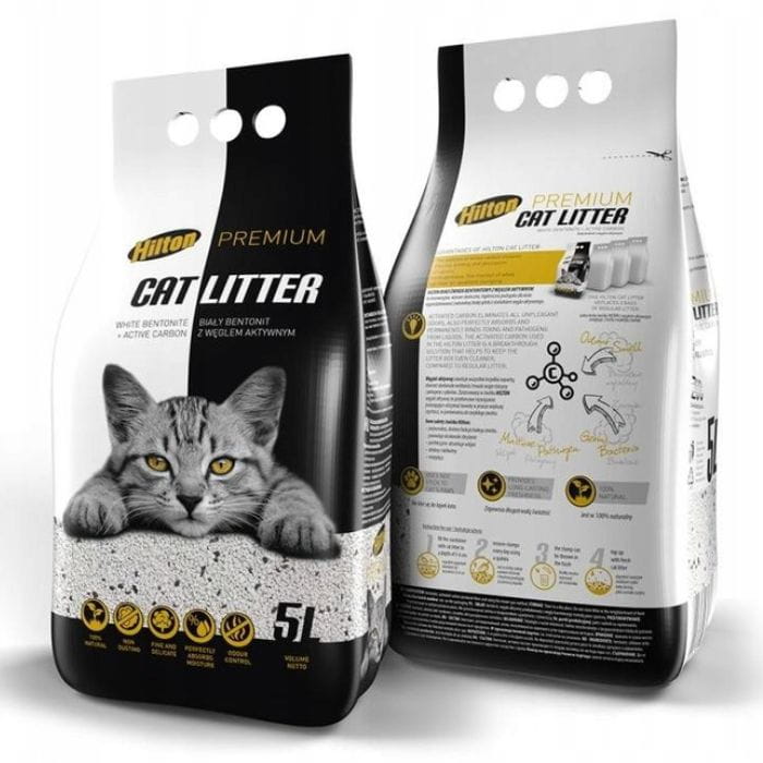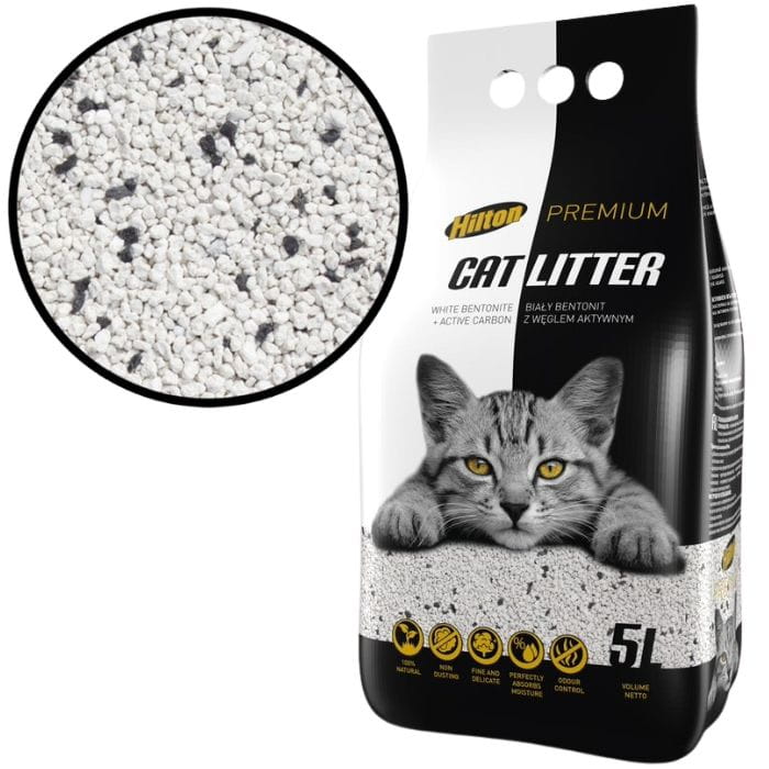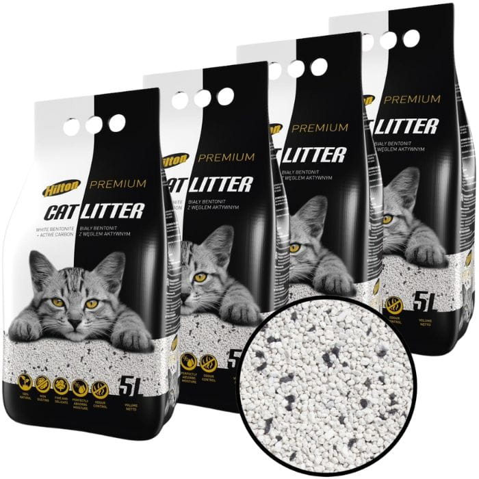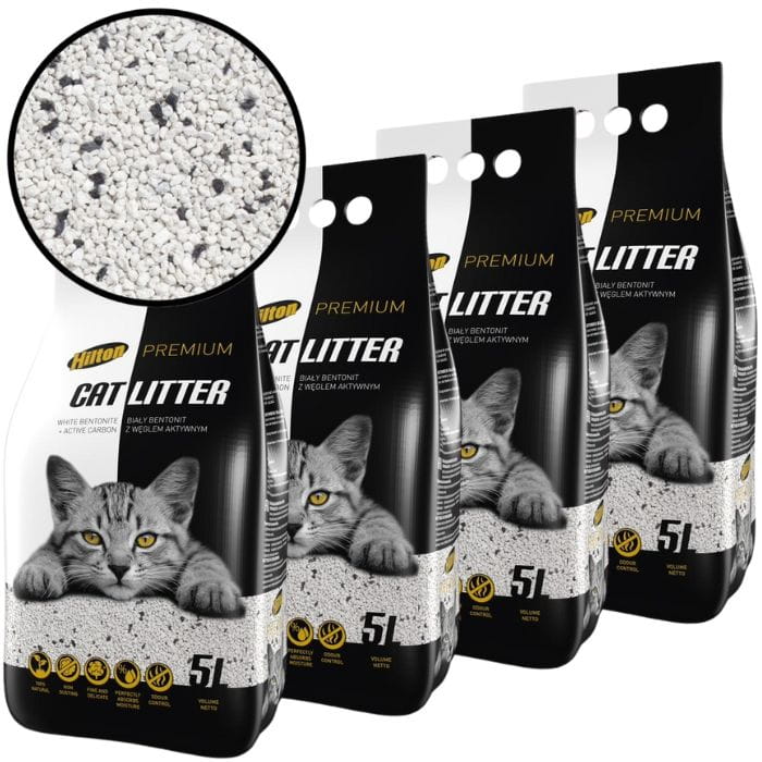 Hilton Żwirek dla kota Biały bentonit z węglem aktywnym 4 x 5l