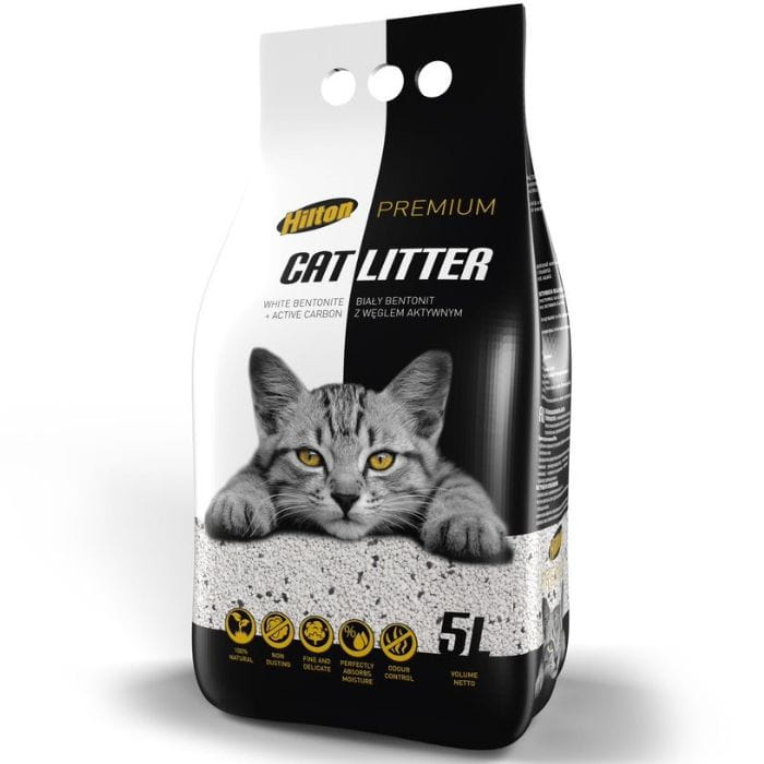 Hilton Żwirek dla kota Biały bentonit z węglem aktywnym 5l