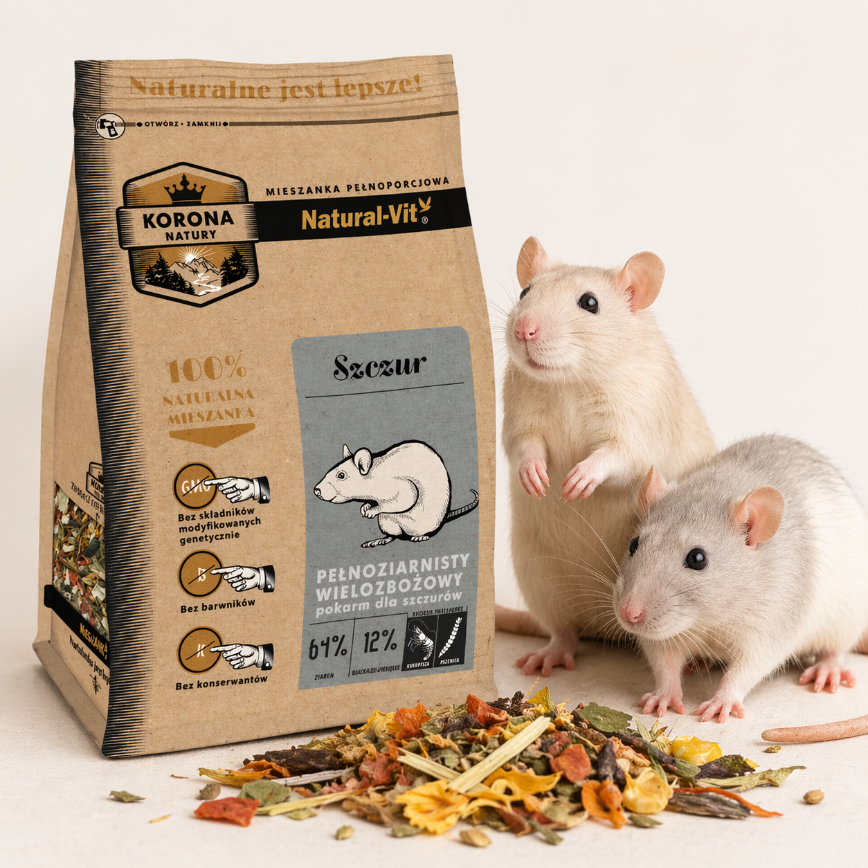 Pełnowartościowa mieszanka pokarmowa opracowana specjalnie z myślą o potrzebach żywieniowych szczurów. Bogata kompozycja ziaren, warzyw, owoców oraz dodatków proteinowych zapewnia zróżnicowaną i naturalną dietę.