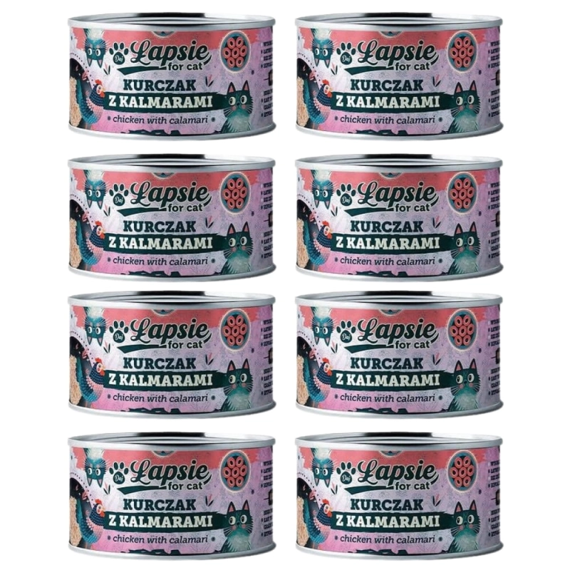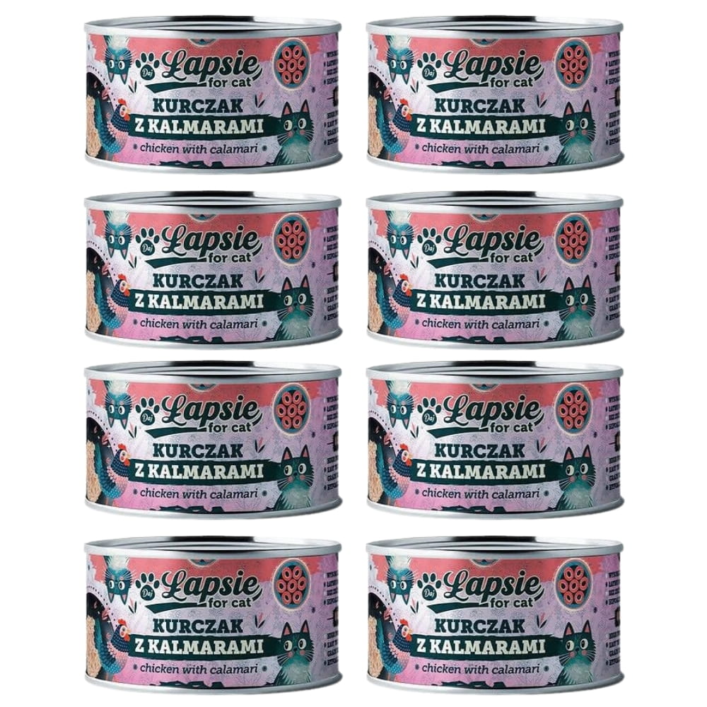 8x Mokra karma dla kota Łapsie kurczak z kalmarami w bulionie naturalna karma dla kotów 80 g