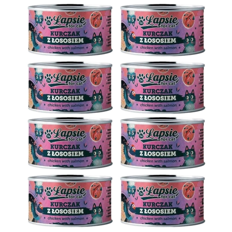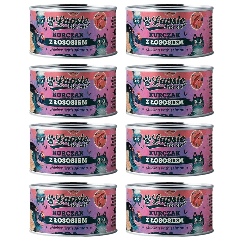 8x Mokra karma dla kota Łapsie kurczak z łososiem w bulionie naturalna karma dla kotów puszka 80 g