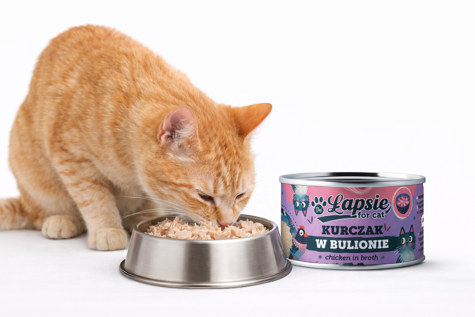 Bulion z kurczaka nadaje karmie naturalny aromat oraz wspiera przyjmowanie płynów przez kota.