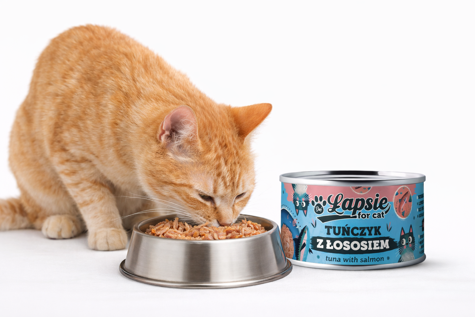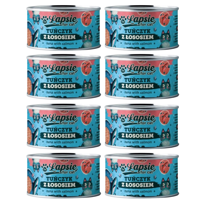 Łapsie mokra karma dla kota tuńczyk z łososiem w bulionie 8x 80g