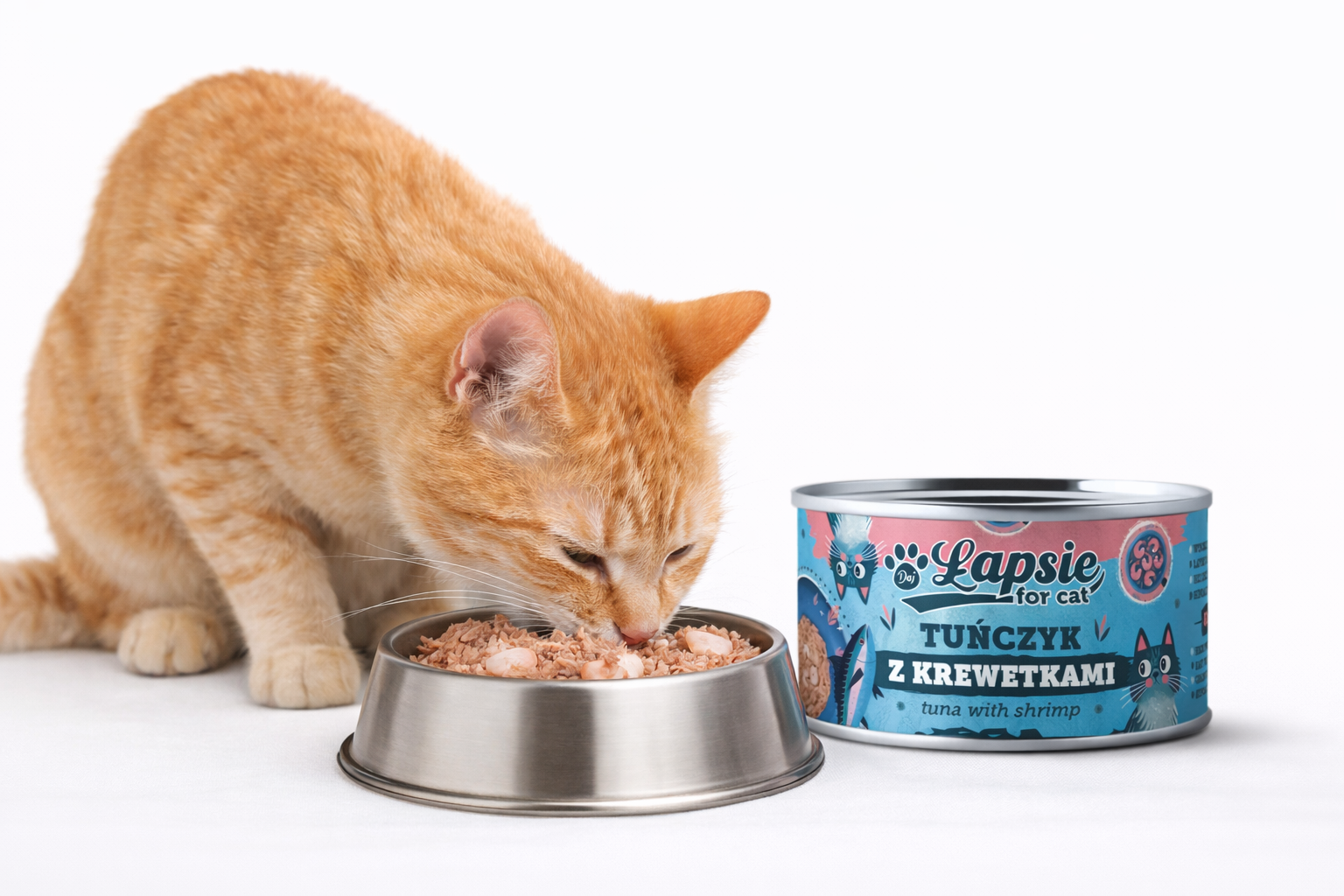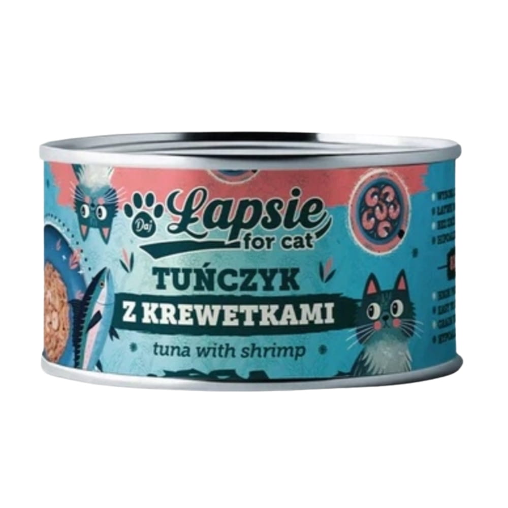 Mokra karma dla kota Łapsie tuńczyk w bulionie z krewetkami naturalna karma dla kotów puszka 80 g