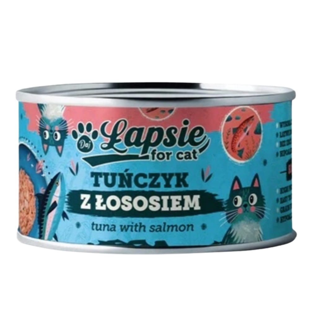 Mokra karma dla kota Łapsie tuńczyk z łososiem w bulionie naturalna karma dla kotów 80 g