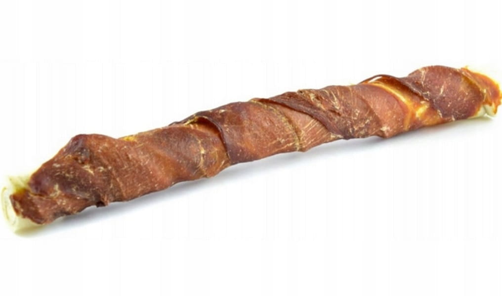 Biała pałka ze skóry wołowej owinięta mięsem z kaczki