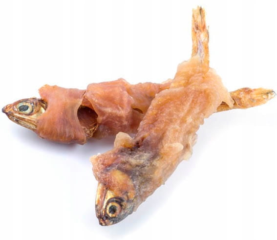Suszona szprotka owinięta mięsem z piersi kurczaka