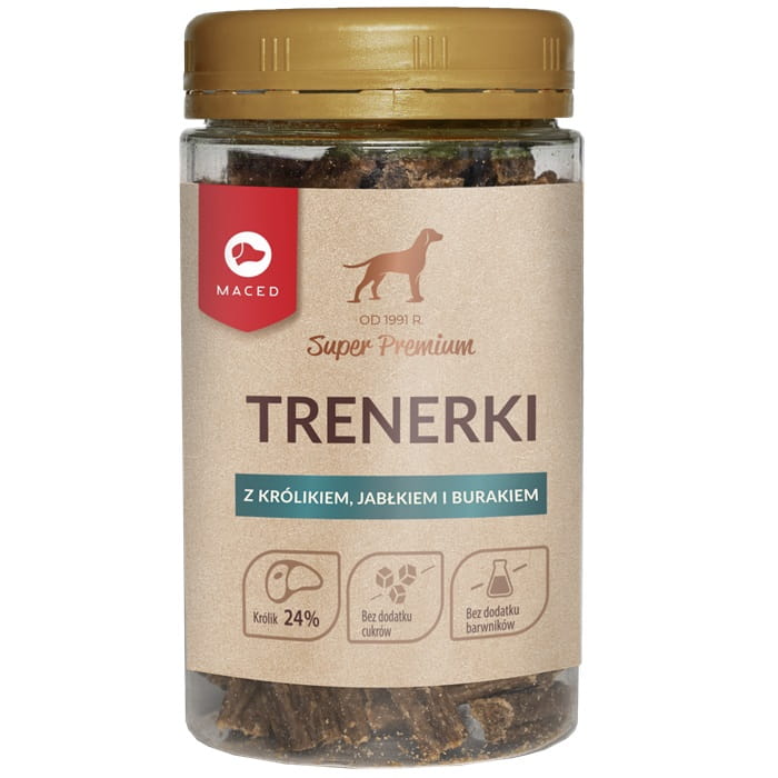 mięso i produkty pochodzenia zwierzęcego 88% (kurczak 56%, królik 24%, wołowina 8%), produkty pochodzenia roślinnego, suszone jabłko 3,6%, suszony burak czerwony 0,8%, minerały.