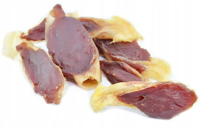 pierś z kaczki 43%, uszy królicze 40%, glicerol, białko orzechowe, sorbitol, skrobia ziemniaczana, sól
