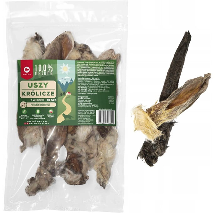 Maced 100% natura Uszy królicze z włosem 10 szt