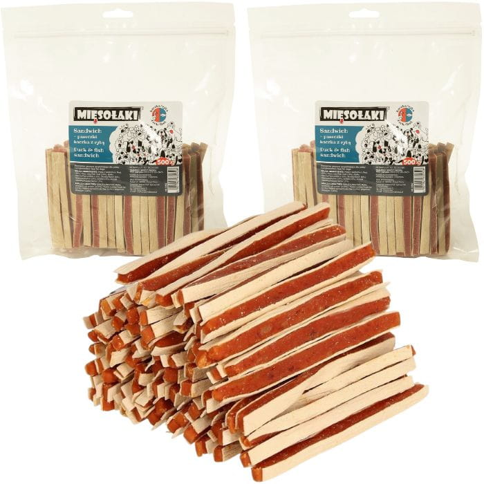 Mięsołaki Sandwich Paseczki Kaczka z rybą 2 x 500g Przysmak dla psa