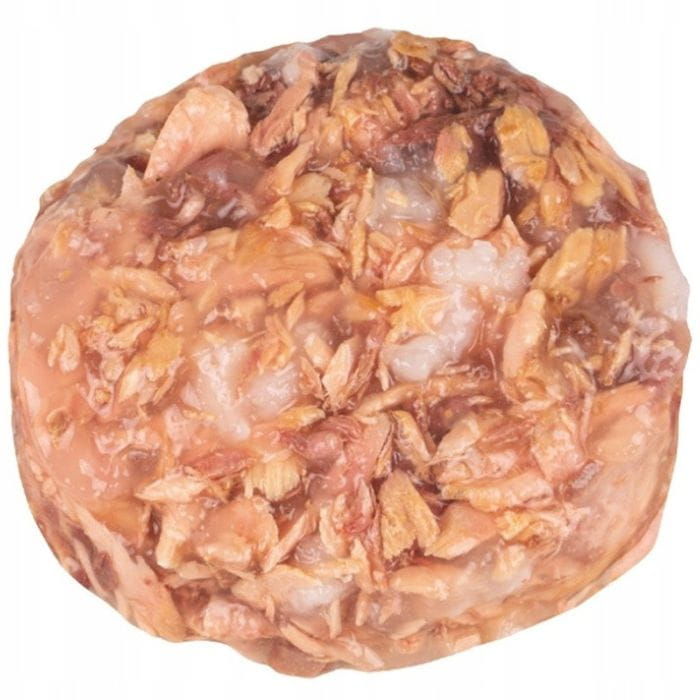 Skład: tuńczyk 51%, ryż 1,5%, żelatyna roślinna 0,75%.