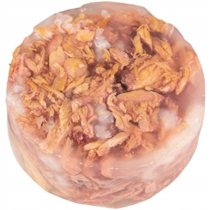 Skład: tuńczyk 51%, okoń morski (seabass) 6%, ryż 1,5%, żelatyna roślinna 0,75%.