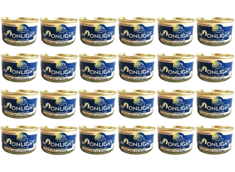 Karmy Moonlight Dinner spełniają najwyższe normy bezpieczeństwa. Świeże, nigdy nie mrożone mięso kurczaka pochodzi z certyfikowanych hodowli, a tuńczyk i owoce morza poławiane są w czystych wodach oceanicznych i przetwarzane pod rygorystyczną kontrolą sanitarną.