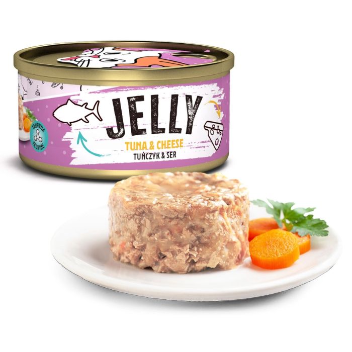 Mr. Bandit Jelly to smakowity przysmak dla kota w formie soczystych kawałków tuńczyka zanurzonych w delikatnej galaretce z dodatkiem sera. To świetne urozmaicenie codziennej diety, które zachwyca smakiem, a jednocześnie wspiera nawodnienie kota.