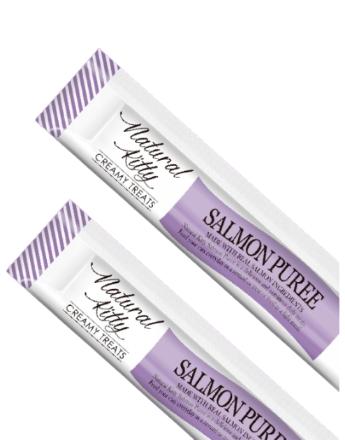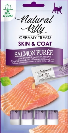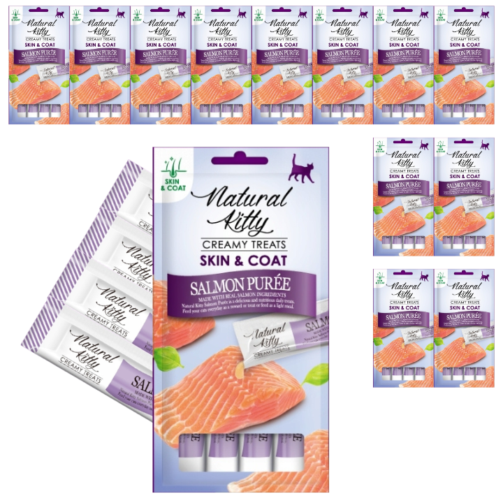 ZESTAW 12x Natural Kitty przysmak dla kota Puree z Łososia Skóra i Sierść 48g (4x12g)