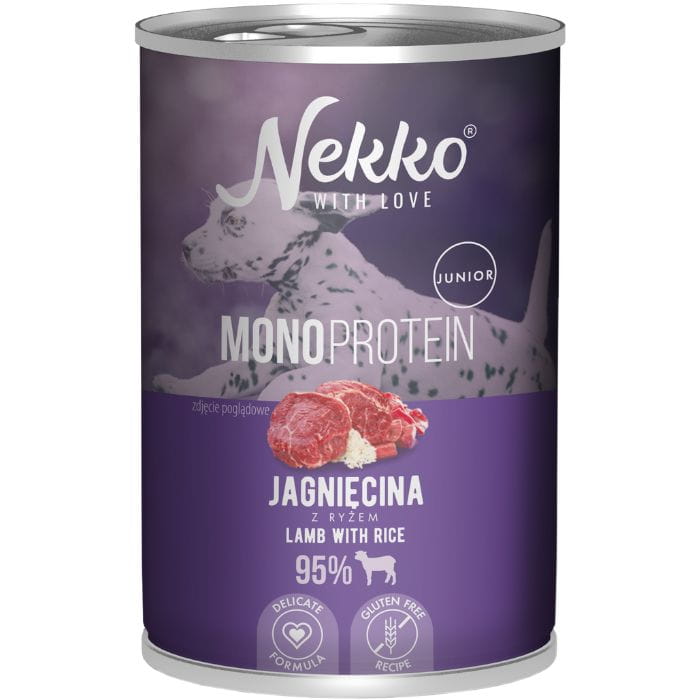 Nekko Monoprotein JUNIOR Karma mokra dla psa Jagnięcina z ryżem 400g