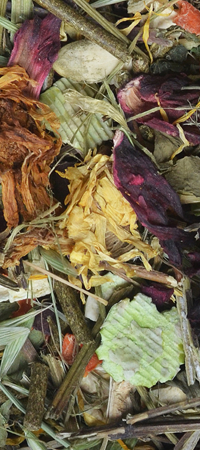 suszona trawa, otręby, marchew suszona, burak suszony, pasternak suszony, granulat aronii, granulat jabłka, jabłko suszone, siemię lniane, mięta suszona, pokrzywa suszona, gałązka porzeczki suszona, kwiat hibiskusa, kwiat nagietka, dynia w łupinie, koniczyna suszona, ziele owsa suszone, nasiona słonecznika, spirulina, inulina, ekstrakt z Yukki schidigera, materiały paszowe pochodzenia mineralnego