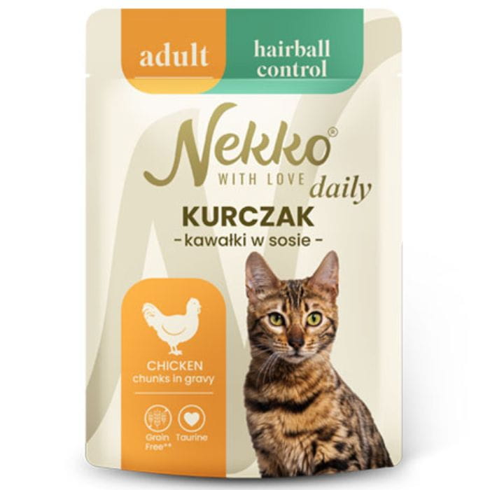 Nekko Daily dla kota Adult Hairball Control Kurczak kawałki w sosie 85g